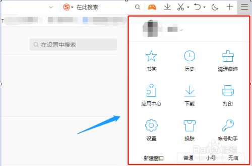 首先打开QQ浏览器,然后点击浏览器右上角的“菜单”选项,然后会鄙人方弹出一个窗口,如图所示...