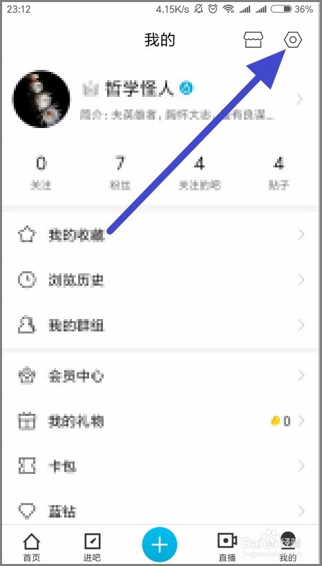 在我的小我本家儿页面,点击右上角的设置。