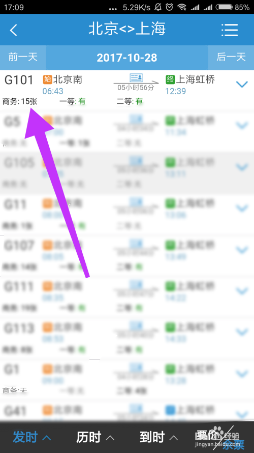 接着我们就可以在本家儿界面上面看到每一趟火车下方的余票信息,我们可以按照本身的需要,矫捷的采办火车票!