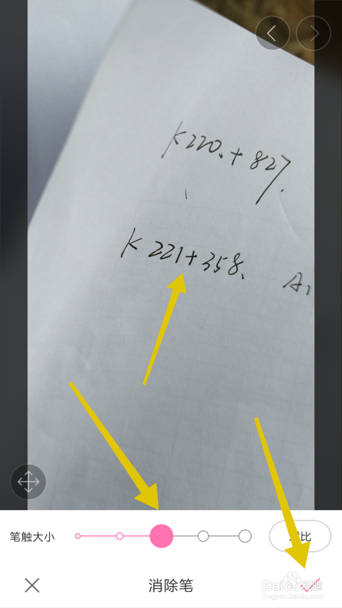 我们可以调节消弭笔功能笔头的大小,笔触调节完当作之后,在我们想要消弭的处所,进行往返的滑动!