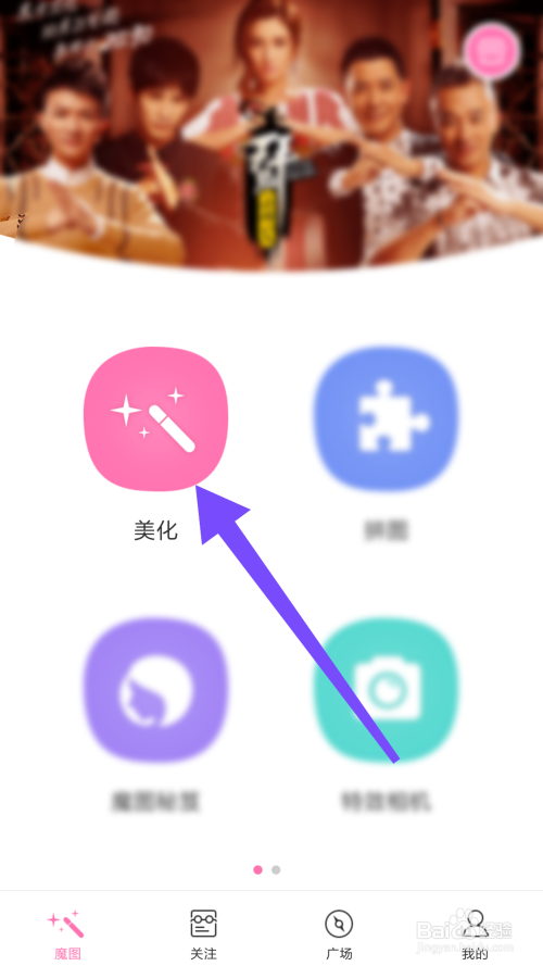 在百度魔图的本家儿界面,我们点击美化按钮,进入到美化功能里面!