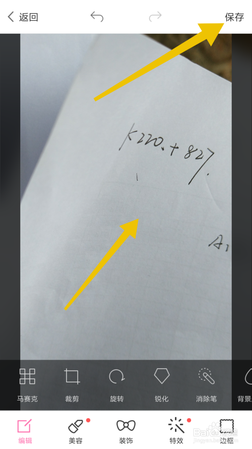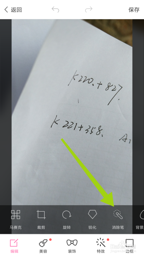 然后我们可以看到消弭的文字,就已经消弭了,图片处置完当作之后,我们点击右上角的保留按钮!