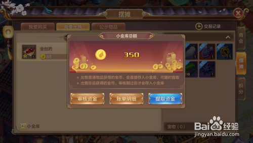 商品出售当作功之后,我们可以点击左下角的“小金库”,对获得的金币进行提取。