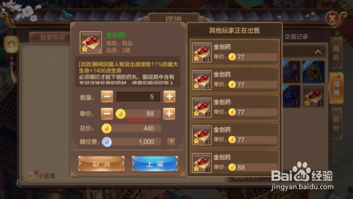 点击要出售的道具,系统会弹出价钱和数目的设定界面,我们设置好出售的数目和价钱就可以上架出售了。