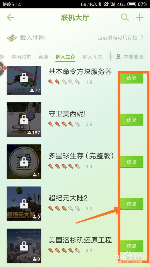 点击当地联机,我们可以看到其他玩家已经建立的当地地图,可以插手任何一下尚未满员的当地房间地图,如下图所示