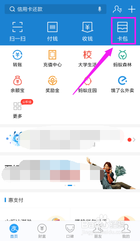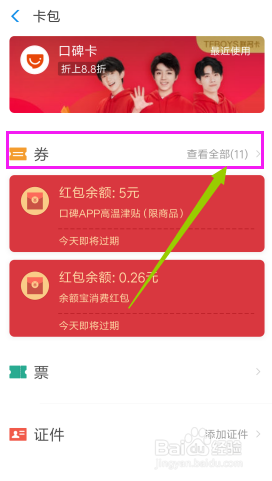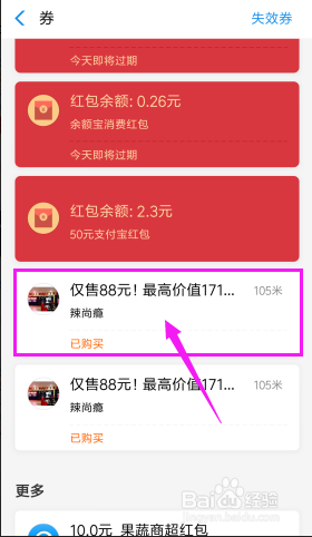 点击【卡包】。我们采办的或是获得的券都在卡包中。