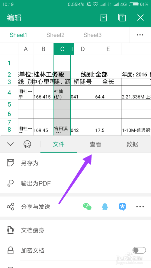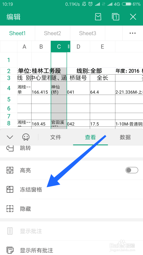 进入到表格之后,首先选中我们想要冻结的行或者列,然后点击下方的东西。