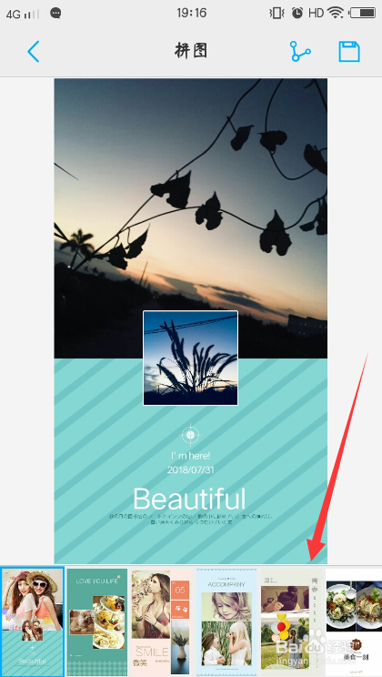 查看拼图结果,屏幕下方有多个拼图结果,可以依次选中切换结果。