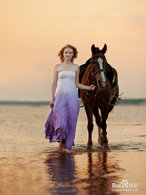 在摄影过程中,道具真的是很主要的,不管是借助一匹马、一个小狗、一条丝巾……都能拍出意境,并且长裙也最能揭示女性优雅、优美的特点。