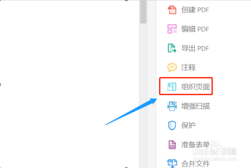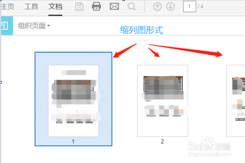 在软件的右侧有一项“组织页面”选项,点击今后可以查看此PDF文件的缩列图,如图所示...