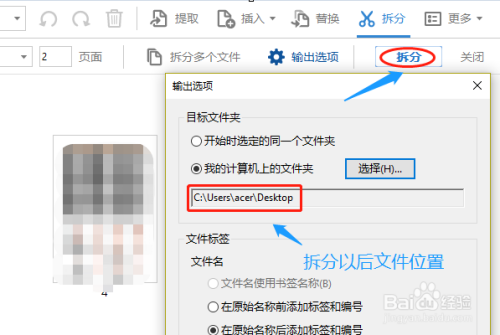 然后我们为了便于查找,应该事先设置拆分今后的文件保留位置,设置完当作今后点击拆分就完当作了,下图就是拆分为2个文件的情景...