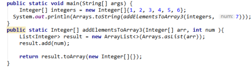 System.out.println(Arrays.toString(addElementToArray(arr,6)));