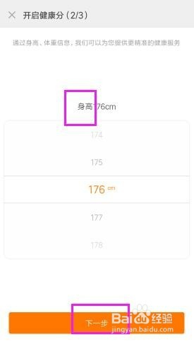 选择我们的身高。然后点击【下一步】。