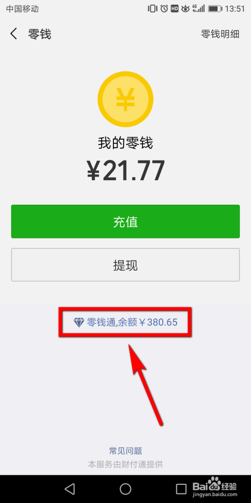 点击之后就显示出你的零钱余额了,在余额下方点击【零钱通,余额】选项,如图所示。