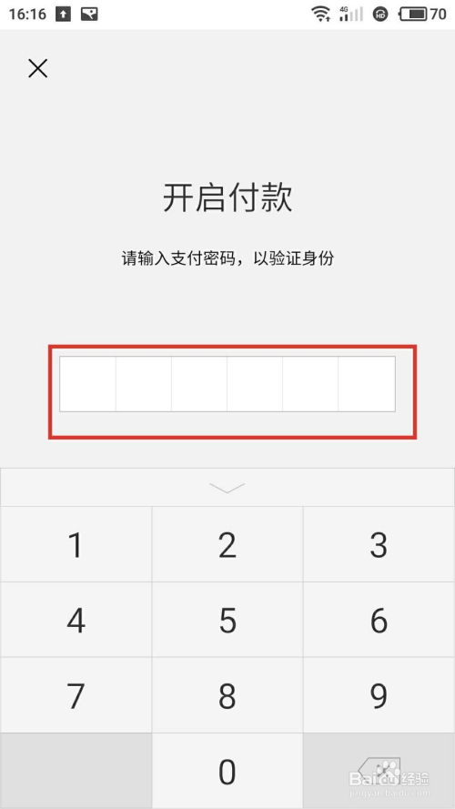 输入本身微信钱包的密码,开启标的目的商家付条目,如下图所示:
