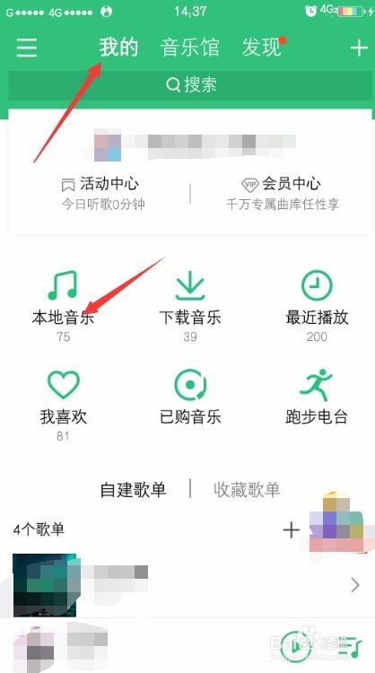 进入到软件内,上方位置要选择我的,并点击当地音乐进入。