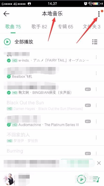 点击当地音乐后进入当地音乐窗口,点击右上角三点按钮。