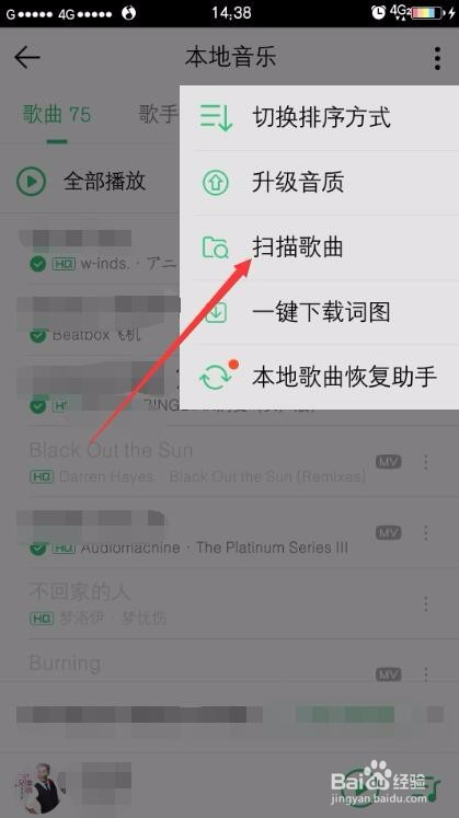 三点按钮弹出小窗口中点击扫描歌曲。
