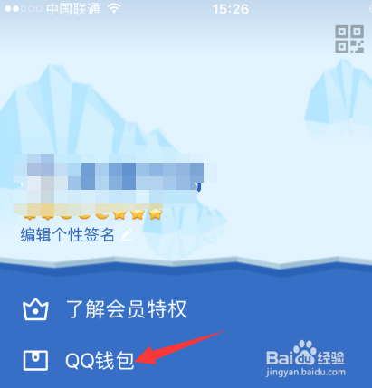 呼出QQ侧边栏后,我们点击进入QQ钱包,参考下图