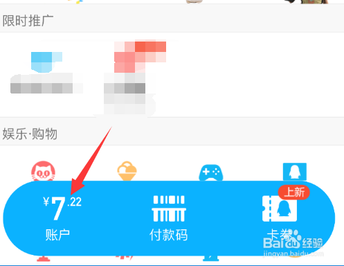 进入QQ钱包后,点击左下角的账户,进入账户界面,如下图示