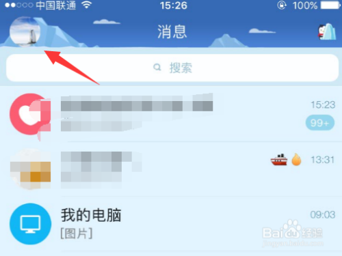 进入手机QQ聊天界面后,我们点击QQ头像,呼出QQ侧边栏,如图示