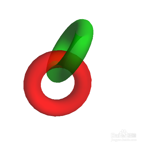 绘制两个套在一路的圆环,两个圆环红绿相间: