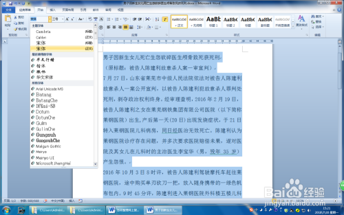 第五步:【设置字体格局】全选文档,单击“起头”选项卡,在“字体”组平分别设置字体、字号、字体颜色等。