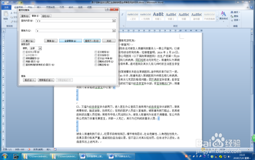 第二步:【删除空格】文字间的空格又分在全角状况下、在半角状况下输入的。若是空格少的话可以选中空格,按删除键删除,若是空格比力多,可以利用“查找/替代”功能。方式:单击“起头”选项卡,在“编纂”组中单击“替代”按钮,在打开的“查找/替代”对话框中单击“更多”,在打开的“搜刮选项”中设置“搜刮:全数”,去失落复选框中“区分全/半角”及“忽略空格”的勾选。接着单击下面的“特别格局”,在弹出的下拉列表中选择“空白区域”,然后在“查找/替代”对话框中选择“查找”,在“在以下项中查找:本家儿文档”,这时文档中的空格全数选中,按删除键删除即可。也可以将其替代当作无内容。