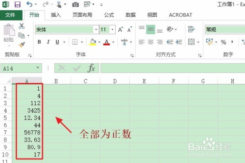 首先,我们打开Excel办公软件,然后成立一组全数为正数的表格,如下图所示...