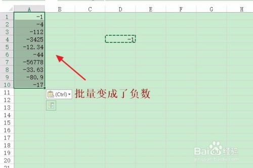 在该对话框,我们将系统默认的运算下的“无”更改为“乘”,然后适才的那组数字就全数酿成负数了,如图所示...