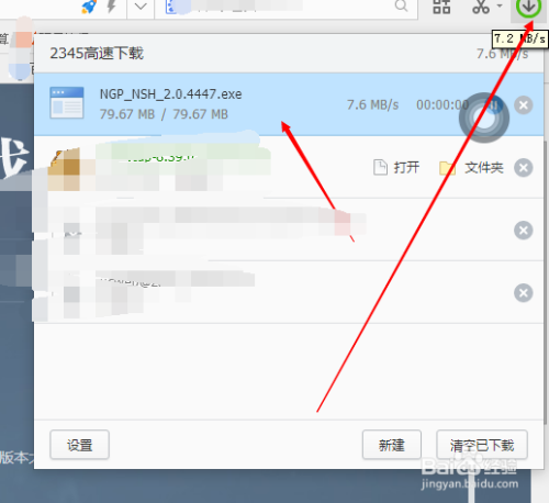 下载完当作后就在电脑右上方点击文件夹打开该文件,如图。