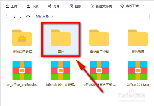 点击新建文件夹之后,在网盘本家儿页面中会呈现一个新的文件件,默认文件名为新建文件夹,我们再次对文件夹进行重定名。