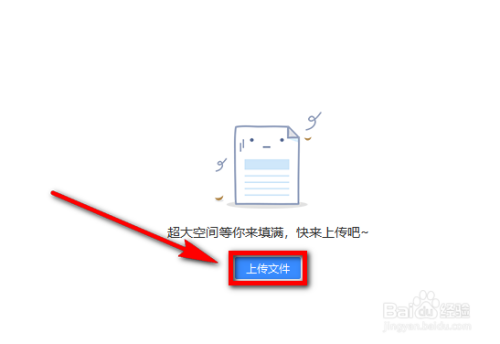 打开文件夹后,在文件夹中有个【上传文件】按钮,点击这个按钮。
