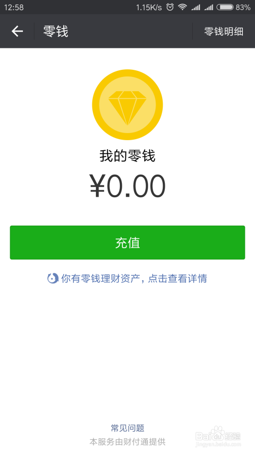钱包打开后映入眼帘的就是钱包里的零钱,我们可以看到我们收到的红包主动存入到零钱里;