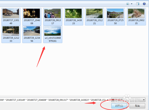 点击“选择照片和视频”,将要上传的照片同一放到一个文件夹里,便利查找,选中要上传的照片,点击“打开”。