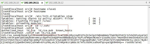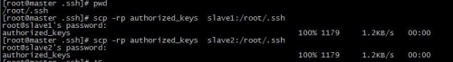 6、将master中的authorized_keys文件长途传输到Slave1、Slave2虚拟机中;