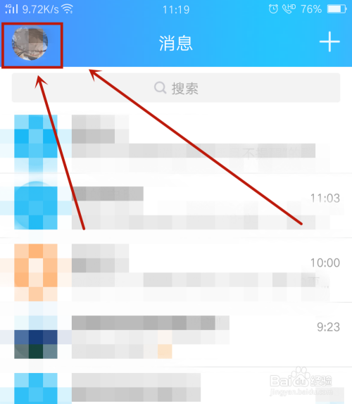 进入QQ本家儿面板中,点击左上角头像,进入菜单设置,如图所示