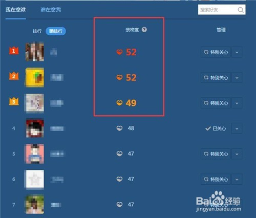 但我们可以点击状况栏的“老友”,点击“亲密度”,经由过程老友亲密度来判定,如下图所示:
