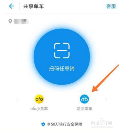 3.进入【共享单车】本家儿页面之后,点击右下角的【哈罗单车】,进入【哈罗单车】本家儿页面,如下图所示。
