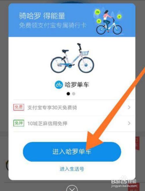 4.点击【哈罗单车】之后,会弹出一个新的对话框,此时继续点击【进入哈罗单车】,如下图所示。