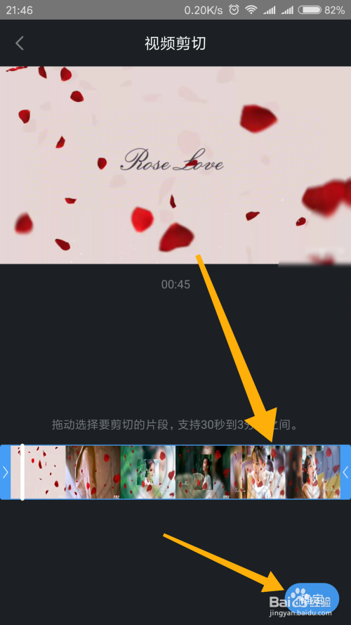 视频选择完当作之后,我们还可以对本身所选择的视频进行剪切,剪切建造完当作之后,点击右下角确定。