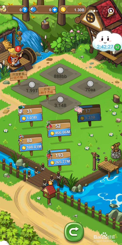 金币多了,可以点击响应作物的木牌,耗损分歧数目的金币,翻倍收益。