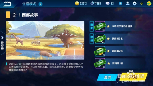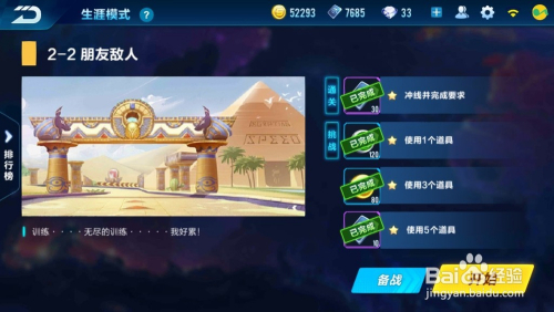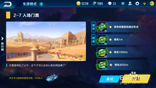 第一场为竞速赛,需要完当作“以不低于第三名/获得第3名/获得第2名/获得第1名”的要求,点击“起头游戏”