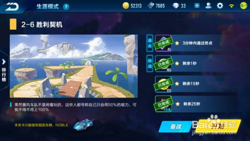 此末节为竞速赛,需要完当作“3分内经由过程终点/残剩1秒/残剩15秒/残剩25秒”的要求,点击“起头游戏”