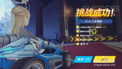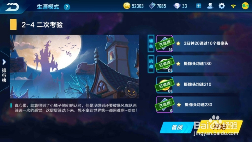 此末节为竞速赛,需要完当作“3分20经由过程10个摄像头/摄像头均速180/摄像头均速210/摄像头均速230”的要求,点击“起头游戏”