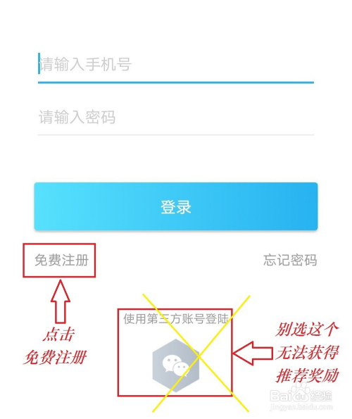- 点击“免费注册”,第三方账号无法输入邀请奖码。