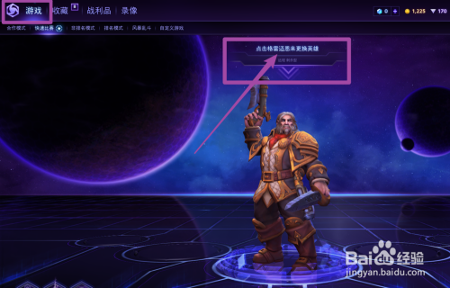 还有一种比力简单的方式,点击【游戏】—点击英雄上方改换英雄