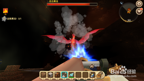 用武,器打远古黑龙,左上角血量度到0时黑龙灭亡,失落落年夜堆星星。