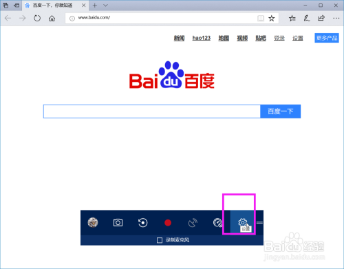 在浏览器界面,按键盘上的 win图标键 + G,打开录制导航条,如图所示