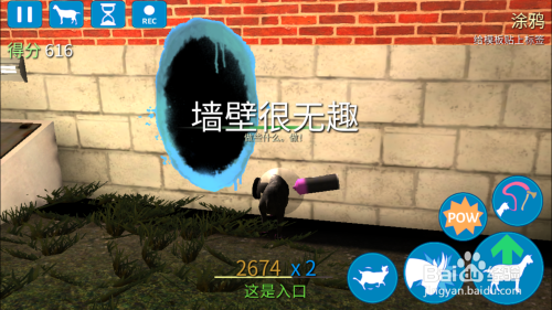 绕着黉舍墙壁走,发现一个没有上色的图标,拖动喷刷桶走上前,完当作涂鸦。